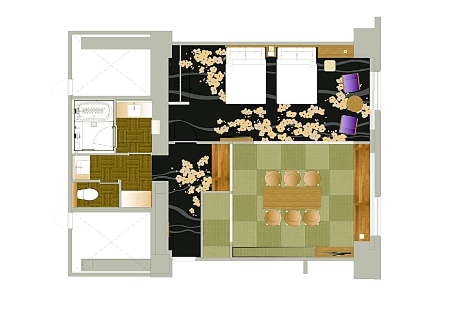 The family room includes a private bathroom, well-fitted with a bath, a shower, a bidet, a hairdryer and slippers. The spacious air-conditioned family room features a flat-screen TV with satellite channels, tatami, a tea and coffee maker, a wardrobe as well as city views. The unit has 6 beds.