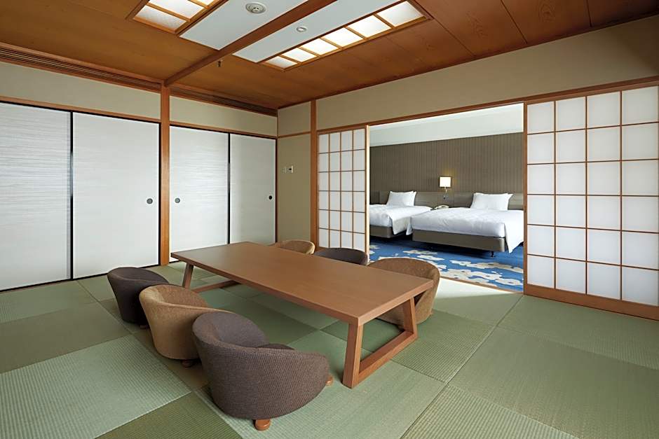 The family room includes a private bathroom, well-fitted with a bath, a shower, a bidet, a hairdryer and slippers. The spacious air-conditioned family room provides a flat-screen TV with satellite channels, tatami, a tea and coffee maker, a wardrobe as well as city views. The unit offers 6 futons.
