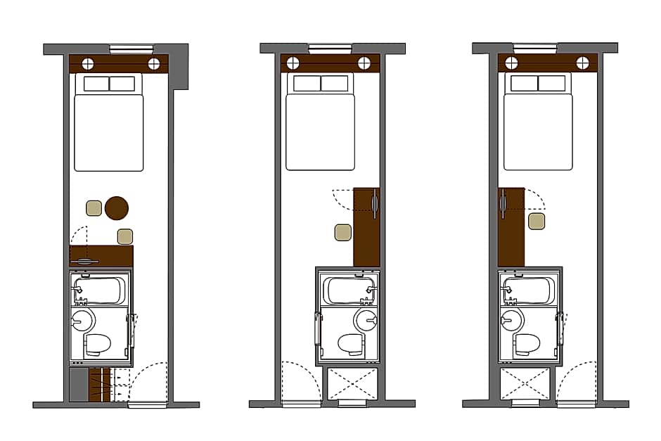 Sunshine Floor Triple Room A (26F-32F) is 312 square feet and includes 2 single beds 80-130 width plus rollaways on demand plus desk and hairdryer.